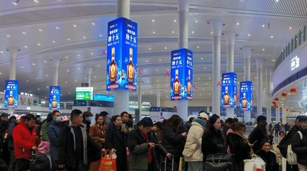 媒體位置:候車大廳數(shù)字三棱屏A面、B面