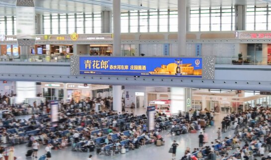 媒體位置:出發(fā)層候車廳三角品牌柱燈箱