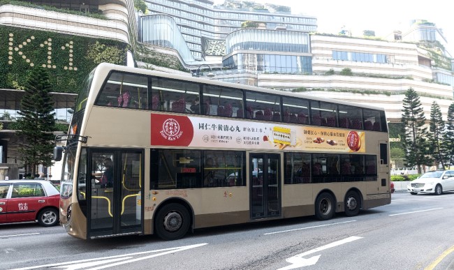 香港雙層公交車身廣告每日18小時(shí)運(yùn)營,涵蓋早市、午休、夜經(jīng)濟(jì)三大消費(fèi)決策波段,高頻次循環(huán)曝光形成“視覺記憶鏈”。上層車廂(4.3米高度)平行對接寫字樓視域,商務(wù)人群接觸時(shí)長5-15分鐘/次。雙層車身廣告面積超35㎡,是普通公交的2.3倍,車身側(cè)面的12米超長展示面,在狹窄街巷中形成強(qiáng)制性視覺焦點(diǎn)。