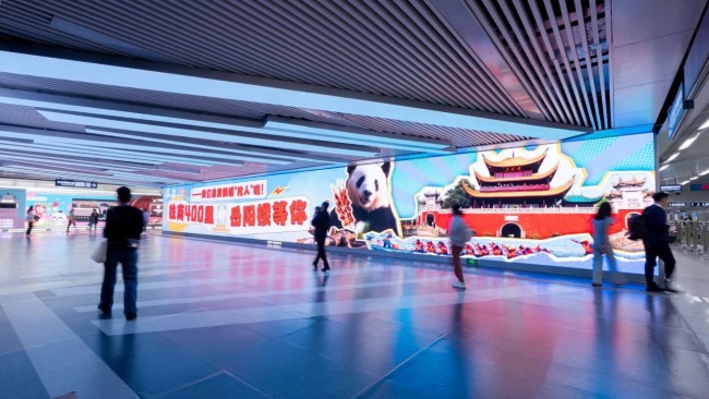 武漢地鐵街道口站換乘通道墻面LED大屏廣告