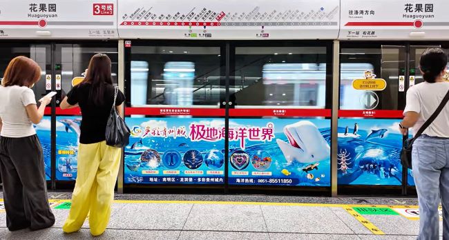 貴陽地鐵花果園站臺屏蔽門廣告投放,貴陽地鐵玻璃貼廣告價格