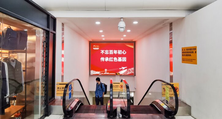 ?媒體位置:一層國內(nèi)到達行李廳下扶梯正對LED