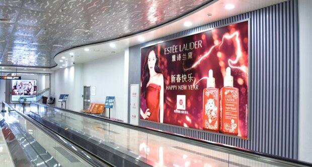 ?媒體位置:T1二層出發(fā)辦票廳通往到達廳梯眉燈箱