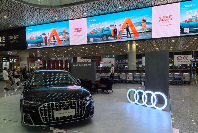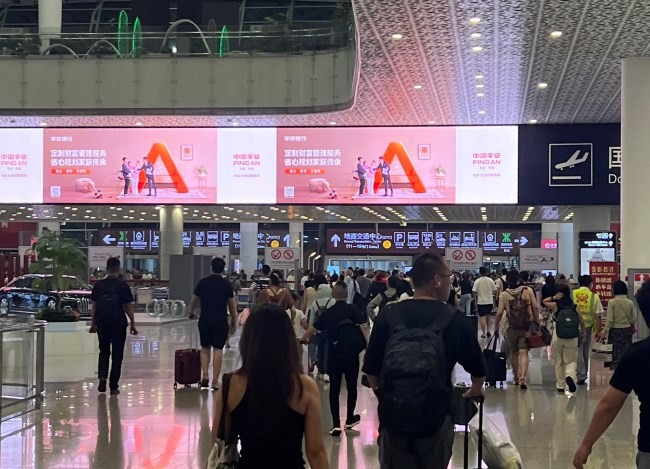 深圳機場國內(nèi)到達大廳出口上方LED大屏廣告