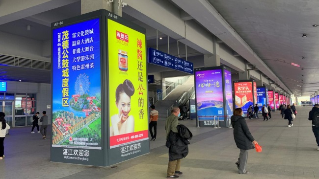 湛江西站進(jìn)出站廣場(chǎng)戶外包柱燈箱廣告