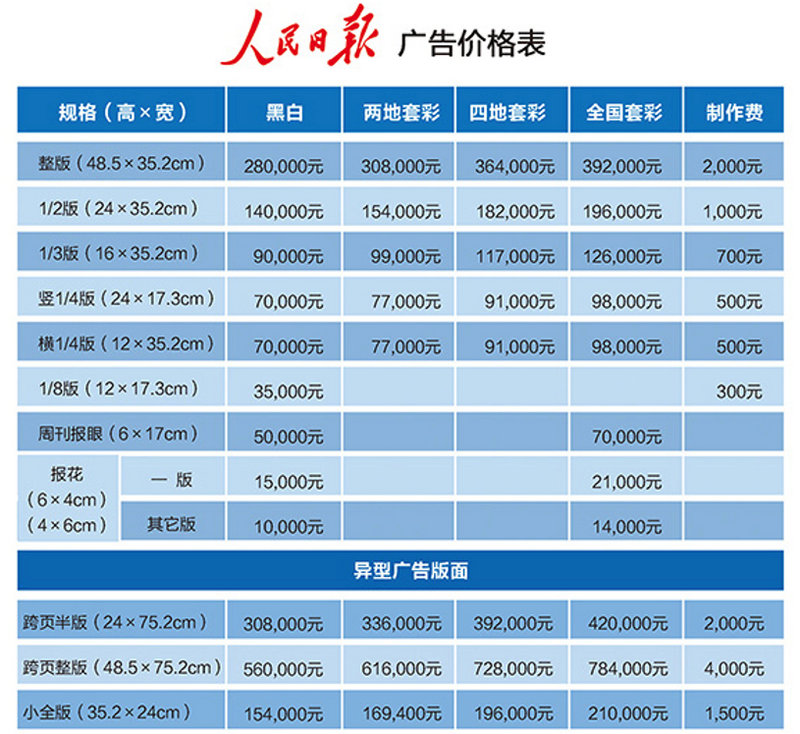 10. 從數(shù)萬元的豆腐塊廣告,到最高78萬元/期的整版異形廣告,雖然都說紙媒式微,但人民日報的廣告價格還是這么高傲!自認為牛逼閃閃的華盛頓郵報的價格也才77萬元/期(美元11.45萬元)。