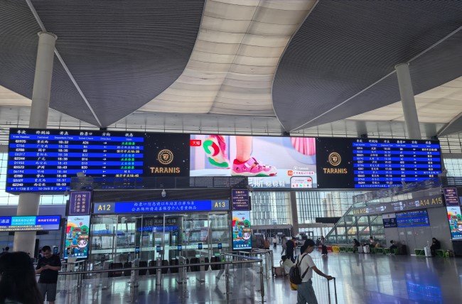 成都東站南進(jìn)站口上方候車大廳中央LED大屏廣告