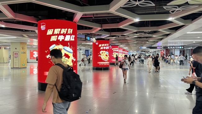 深圳東站負(fù)一層進(jìn)出站換乘大廳包柱LED大屏廣告7柱聯(lián)排全域覆蓋,103.49㎡聯(lián)排組合排列形成視覺矩陣,旅客無論行進(jìn)方向均被動(dòng)態(tài)畫面包圍,規(guī)避視線死角,信息觸達(dá)率較單柱媒體提升 3倍以上。換乘大廳為相對(duì)封閉空間,旅客視線自然聚焦導(dǎo)視系統(tǒng)與立柱區(qū)域,7根包柱憑借布吉地鐵站交匯處的樞紐核心區(qū)位,包柱設(shè)計(jì)完美契合換乘大廳立柱結(jié)構(gòu),在有限空間中最大化利用垂直界面。