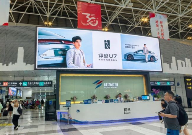 珠海機(jī)場(chǎng)二層出發(fā)大廳中央服務(wù)臺(tái)上方LED大屏廣告