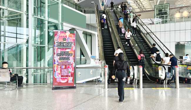 媒體位置:三層出發(fā)廳檢票口+二層扶手電梯換乘口