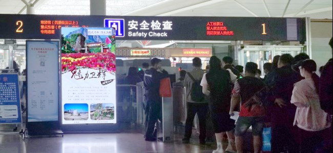媒體位置:出發(fā)層五個(gè)進(jìn)站口安檢儀兩側(cè)