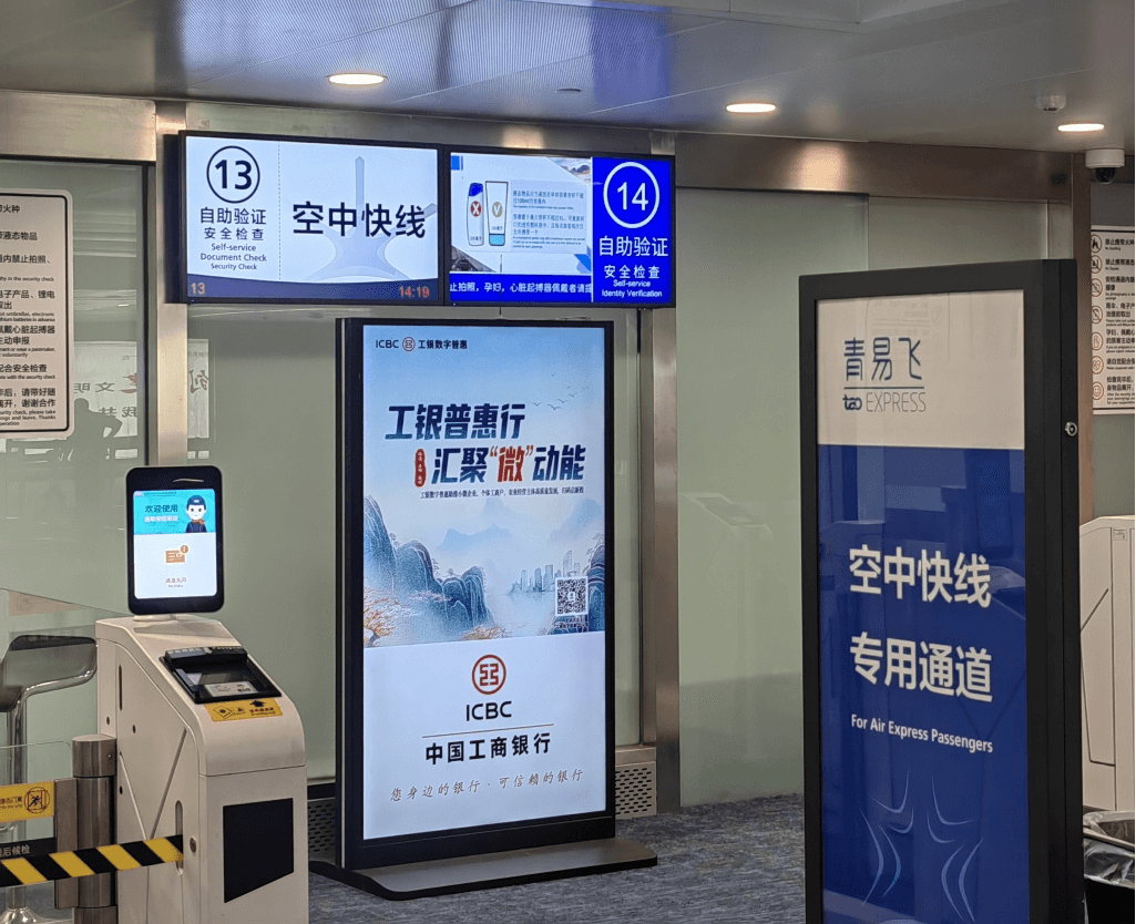 青島膠東3F國內(nèi)出發(fā)安檢口刷屏機廣告