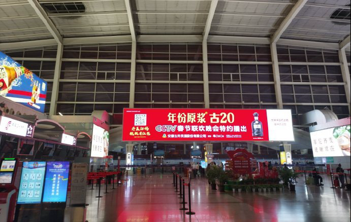 呼和浩特機(jī)場(chǎng)二層出發(fā)安檢口正上方LED大屏廣告