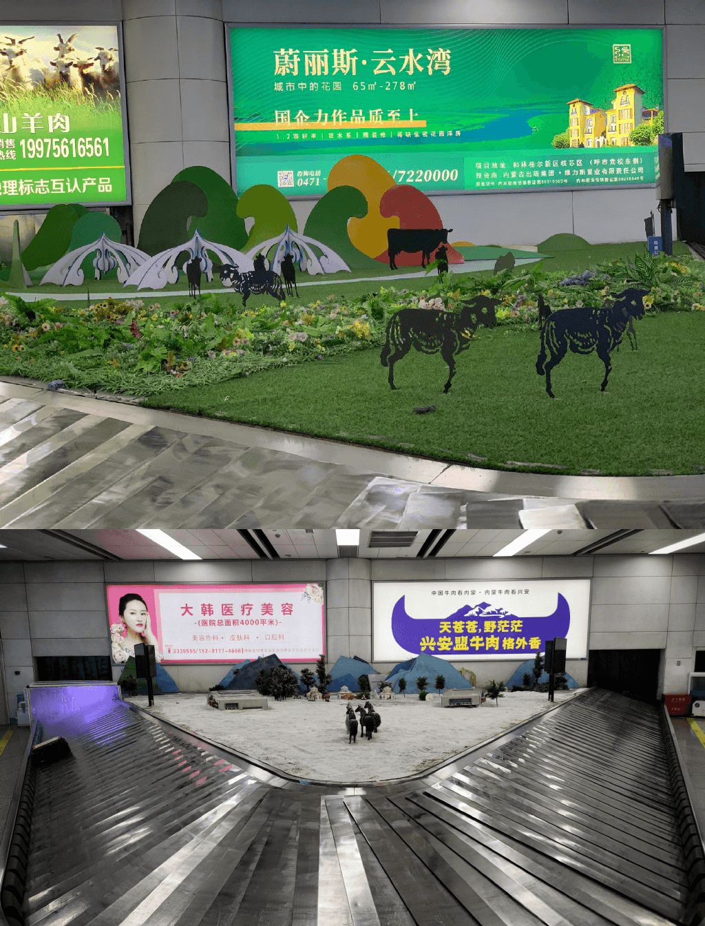 媒體優(yōu)勢(shì):呼和浩特機(jī)場(chǎng)到達(dá)行李轉(zhuǎn)盤(pán)墻面燈箱廣告正對(duì)等候行李的到達(dá)旅客,旅客停留時(shí)間長(zhǎng),草原民族風(fēng)情造景位于廣告位前方,故廣告位時(shí)常出現(xiàn)在旅客的打卡照片中在互聯(lián)網(wǎng)二次傳播。