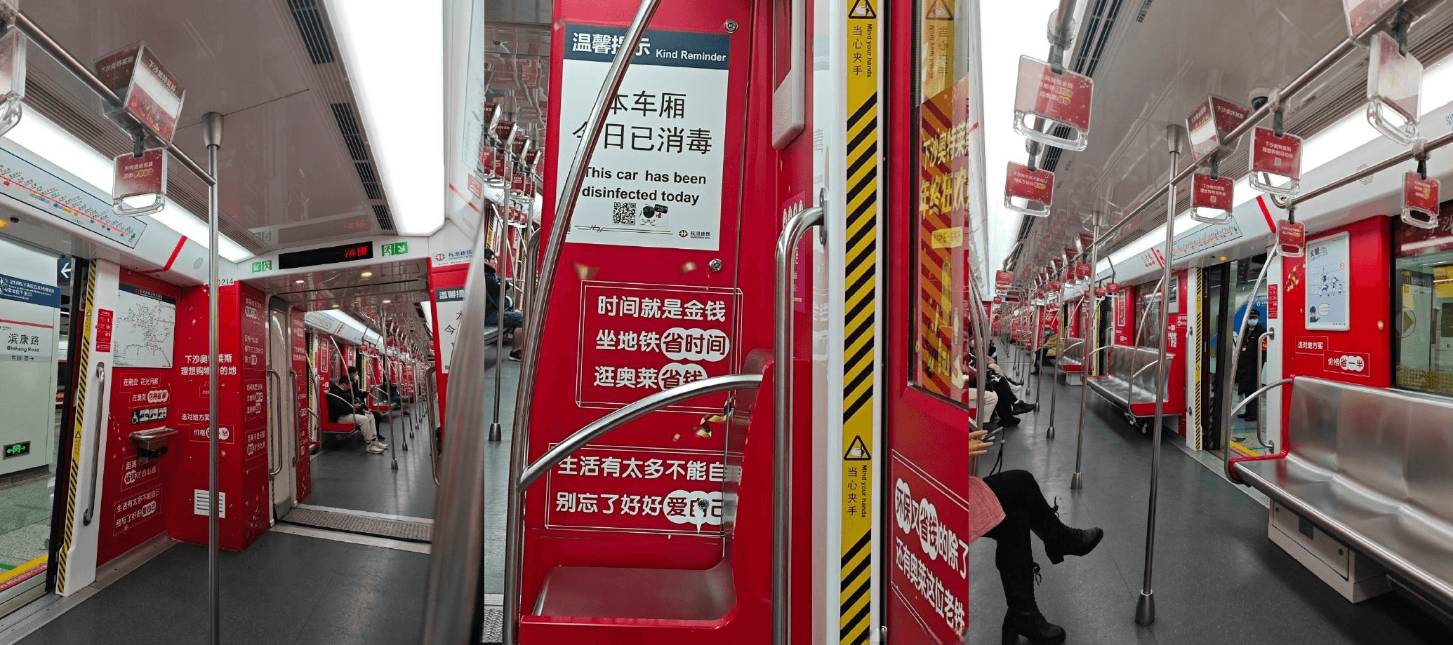 杭州地鐵半包車廣告媒體特點(diǎn):媒體位于列車內(nèi)部,覆蓋每節(jié)車廂;媒體大篇幅覆蓋車身兩側(cè),吸引乘客關(guān)注。杭州地鐵1號(hào)線是客流量最大的線路,東起蕭山區(qū)蕭山國際機(jī)場(chǎng)站,南抵蕭山區(qū)湘湖站。貫穿了杭州蕭山國際機(jī)場(chǎng)、杭州汽車客運(yùn)中心、杭州東站、杭州站、延安路沿線、武林商圈以及西湖景區(qū)周邊。本次隨熱門事件出鏡的杭州地鐵內(nèi)包車廣告來自下沙奧特萊斯,購物中心選用大紅底色的廣告背景宣傳年終狂歡購活動(dòng),自帶喜慶氛圍的同時(shí)格外引人矚目。