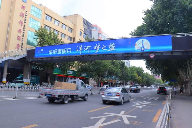 濟寧洸河路育才中學門口跨街天橋LED大屏廣告
