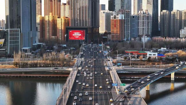 沈陽(yáng)皇朝萬(wàn)鑫LED大屏廣告1037.9㎡超大面積,高度23.64米,形成青年大街制高點(diǎn)視覺符號(hào),有效識(shí)別距離超500米。大屏正對(duì)渾河橋交通咽喉,車輛紅燈等待時(shí)長(zhǎng)60秒+,日均曝光量超100萬(wàn)次。同步覆蓋青年大街雙向車流與渾河兩岸行人,作為青年大街入口“南大門”唯一超千平米LED大屏,其地理壟斷性與歷史認(rèn)知度形成稀缺曝光資源,尤其適合品牌戰(zhàn)略級(jí)形象發(fā)布。