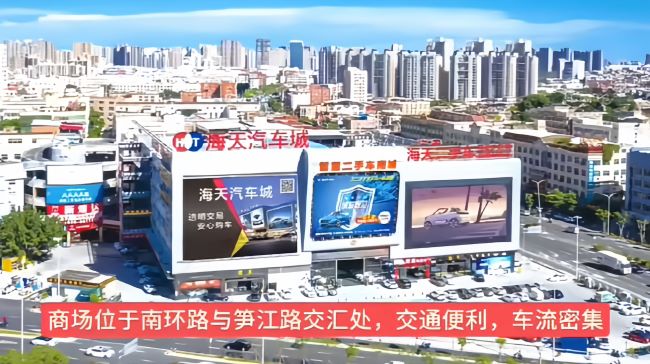 泉州海天汽車城位于南環(huán)路、池峰路、筍江路三大主干道交匯處,形成區(qū)域性交通樞紐,具備顯著的流量優(yōu)勢,作為鯉城區(qū)西南部重要交通節(jié)點(diǎn),日均承接過境車流、物流運(yùn)輸及區(qū)域性消費(fèi)車流。三路交匯形成270°視野范圍,確保各方向來車均能有效識別廣告內(nèi)容。今天給大家介紹下泉州戶外LED大屏廣告價格和熱門位置推薦。